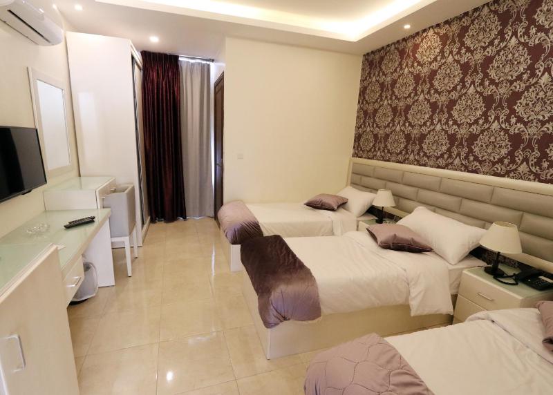 The room was spacious and breakfast was quite good. They offered both classic breakfast options as well as warm food such as scrambled eggs, Jordanian style shakshuka, sausages with bell peppers.