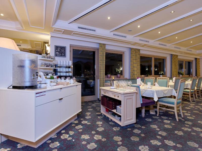 Execeptional food, very clean and a very well run place. It has a strict set of rules for times and ordering, and these work fine as they clearly have experience of corralling skiers to behave and be on time for different meals. Unbelievable wine list and all staff very trained! Run like a military operation by Mrs Erhart!!!