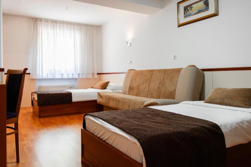 The hotel is not in the best condition overall, but our room was clean and the staff do their job properly. It is conveniently located in the center of Sarajevo, which is a hilly city, and the hotel has a large parking lot — very important for us, as we had to cancel two previous bookings because our car could not fit into the courtyard.