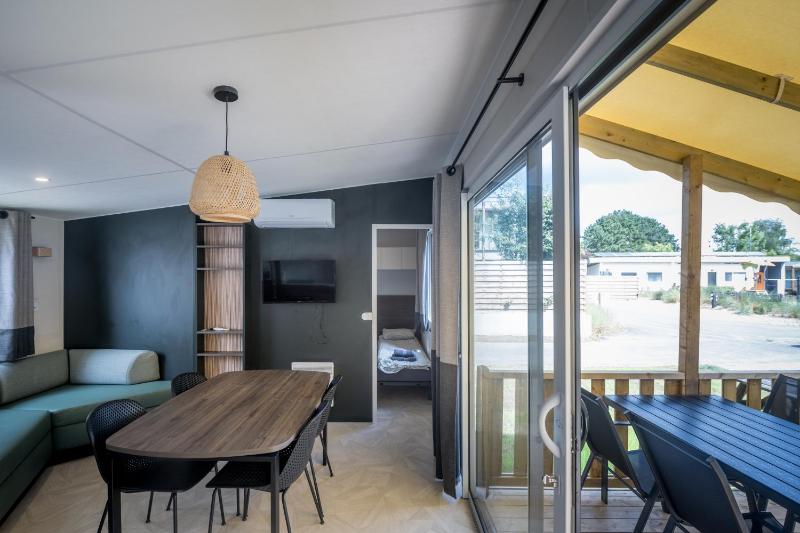 The chalet was very clean and comfortable. The bathroom was an asset. Enough space, especially in the living area. Nice terrace.