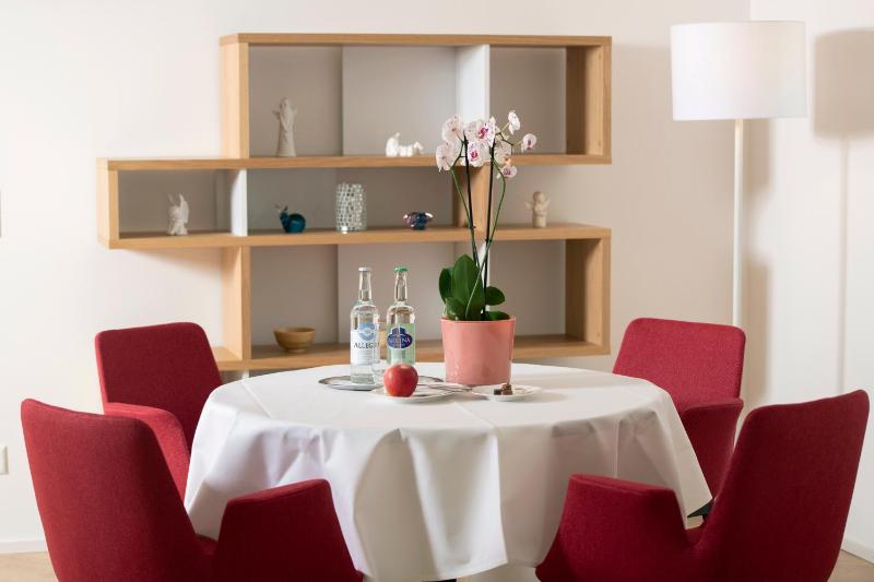 It is a very large and well equipped apartment with living room, enclosed patio and Library/study. the Kitchen was well equipped (although I would have liked an electric kettle.). The bedroom is large and the bed very comfortable. An excellent breakfast was served in the guest dining room. it is a home for retirees so not perfect for younger people but ideal for us oldies. The ferry to Zurich stops not far from the building and the SBB train is a very short walk away. Save money on a posh hotel in Zurich and stay here.