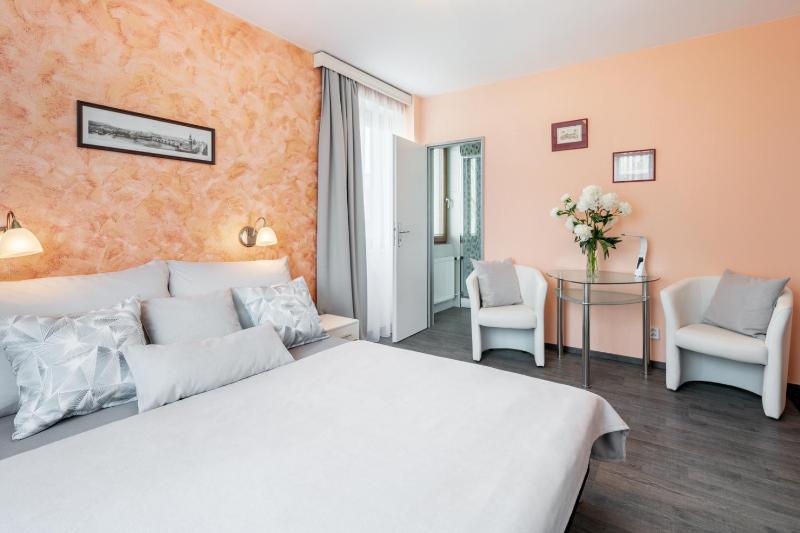 Hosts very friendly and helpful - even securing a free parking space for us. Quiet room overlooking nice gardens. Very convenient to take tram or bus into Prague center. Nice restaurants and cafe nearby.