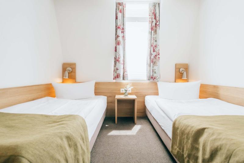 The hotel felt more like a hostel than hotel. Self-service with a key after hours, long winding hallway to get to our room. The most narrow room we've been in during our travels in Germany. No water or other comforts in room.