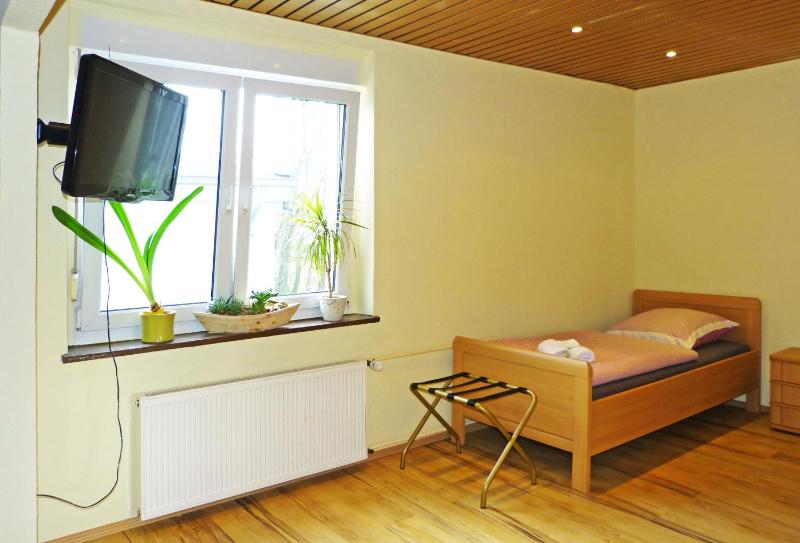 Walking distance to the airport !!! It is a local community center with bar/restaurant and some rooms..We got upgraded to a privite room opposite the street, welcome drink.... hospitality of the management, humble pricing, super clean room.