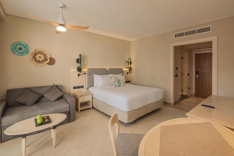 4- towels are only inside the room and not available to change all time. It should be beside pool and sea.