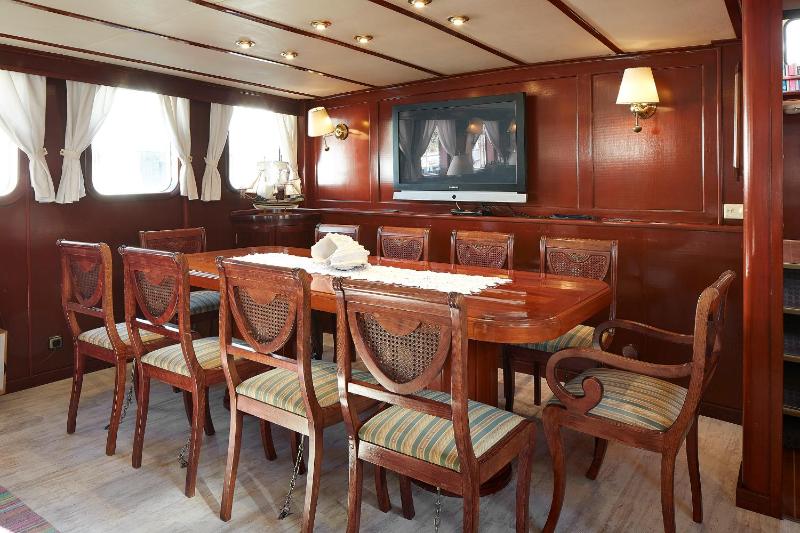 One problem is that the boat is leaving often for private party or sightseeing trips for several hours early evenings and is only coming back between 21-22 hrs. This had been announced already during booking, but once experienced it is a bit of a con... , unless you are out and about all day anyway. But it has to be said you can work comfortably on your laptop in the very tasty and cosy salon - or outdoors on the boat. The internet works very well when the boat is at its port mooring.