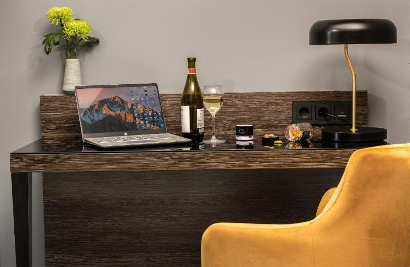 Complémentary flavored water, candies and snacks at the reception. Very quiet room. The district is quiet but has many stores, coffees, bars and restaurants.