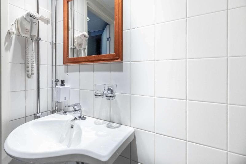 The room was a little worn and torn. The bathroom door was crooked and needed to be pulled hard to shut all the way. The beds had stains (not on the sheets, but the bedsides), and the bathroom shower smelled horribly before rinsing the floor with soap and water. The view was so bad it was funny, but foe a budget room I do not expect a view. I expected however a kettle for tea and coffee but that cost an additional 10€, which I've never seen before in any budget hotel, hostel or motel. For 10€ you can buy a kettle from Lidl and own it :) So that was weird.