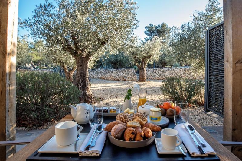 Ooh La La! Provenćal splendor and luxury at its finest. Our room was huge and perfect. We had a large bathtub and double walk-in showers. The giant bed was super comfortable. We even had our own private patio with seating for 6 and a garden that opened directly onto the heated pool. The chef in L’Opale is a master. The vineyard-side tapas and cocktails at L’Anbree were excellent. We even played pétanque there. The grounds and surroundings are lush and beautiful. And the staff were all great. We loved the location too near Eygalieres.