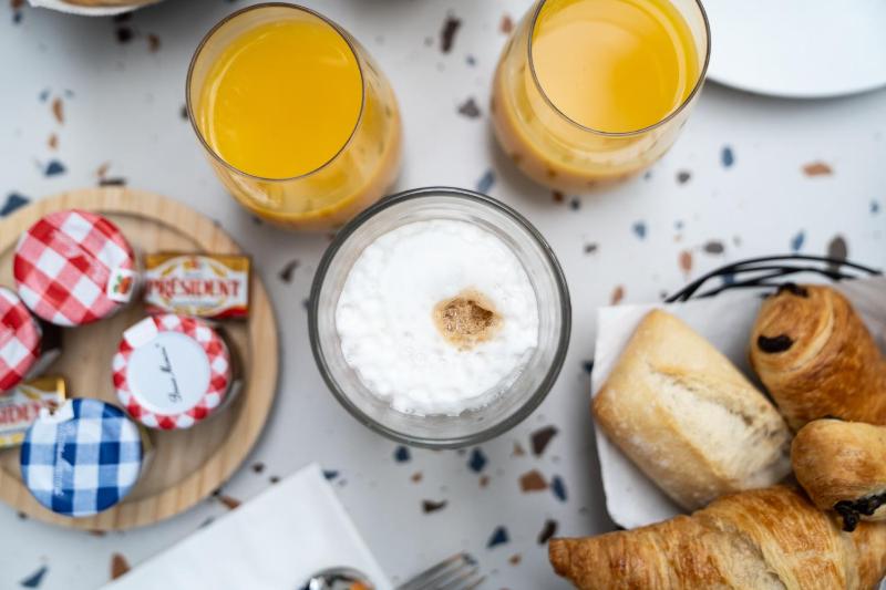 Room was very small and no air-conditioning. We could barely open our luggage and go around the room. Breakfast is average in portion sizes but quality breakfast with one pain au chocolate, one croissant, one small bread baguette with 2 jams, honey, one small yoghurt and hot and cold drink. So don't expect a buffet breakfast or variety but it's ok to start your day with.