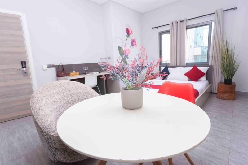 The suite kitchen has no pans to do any cooking. No hotpot or tea/coffee available for guests to make their own in the room. No international outlet to charge your phone and electronics. Front-desk doesn't lend converter (we managed to find one on the street for 20Cedi, but a bit disappointing.) I thought the hotel came with a pool, but didn't seem they had one.
