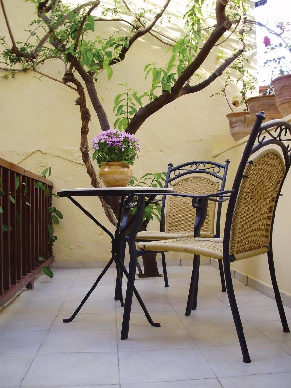 Big room in an authentic historic venetian building in the old town of Chania, next to the old port, with a terrace overlooking both the inner courtyard and the cobbled street, it's the perfect place to enjoy the lovely buzz of Chania. Our host, Thomais, was always available, and brought us a nice homemade breakfast with Dakos, Kalitsounia and Greek Yogurt with honey every morning.