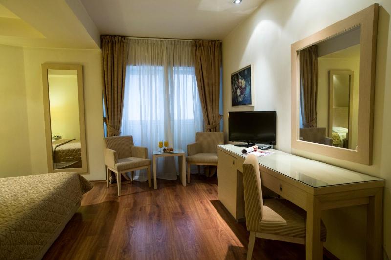 Room was under any expectations. In Bathroom it was NOTHING that you expect in a hotel room for vanity kit, tooth paste - brush - nothing at all for 4 star hotel - Everything very old - the windows dirty, the tv remote with tape on baterry placement, not really come again here