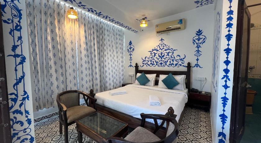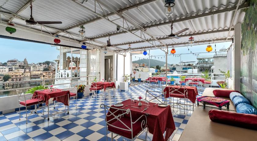 Staff very nice, good roof top restaurant with view of the city palace. Good room with 2 double beds (1big and 1 good for 2 kids).