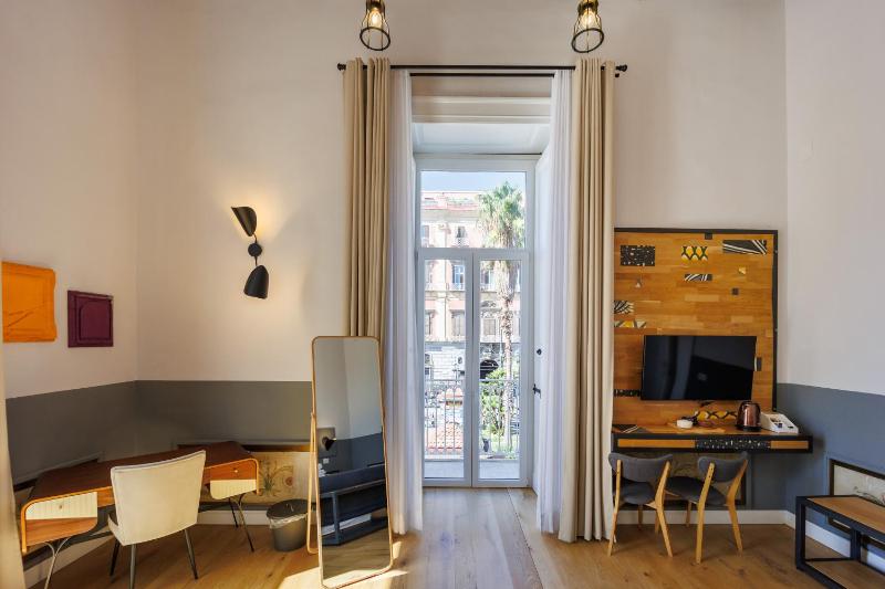 It's an old residential building with extremely tall ceilings and a room (No. 6) facing Piazza Dante right in the centre of Naples! You can enjoy a glass of wine on the balcony watching the life beneath. The location is very central and also easy to get to the parking they suggested. The communal breakfast area has snacks throughout the day and the breakfast itself had everything. Friendly and helpful staff. You can leave your luggage at the reception after check out. Great stay!