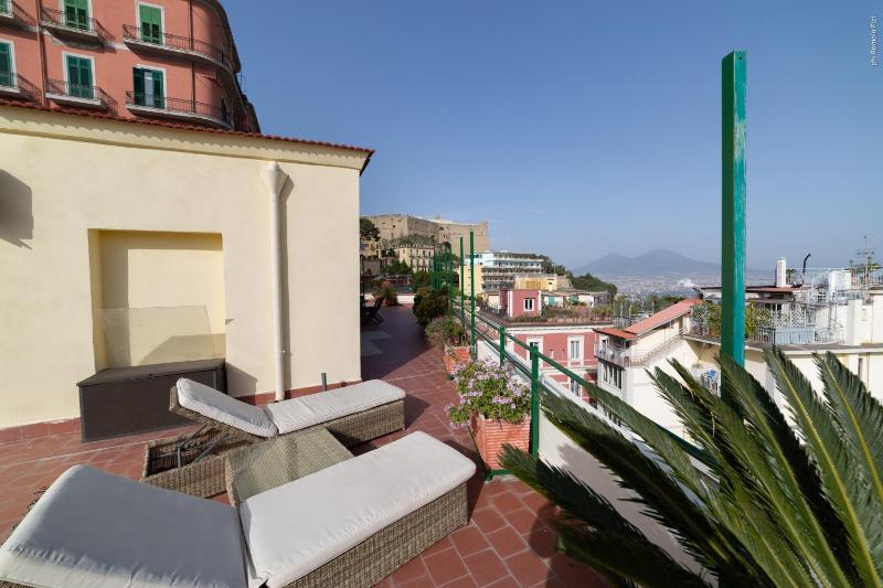 Nice apartment with everything we needed (including air conditioning) on a truly huge terrace with a stunning view on the golf of Naples. Hard to get a better view for your morning coffee (the kitchen has two Moka pots and a gas stove). The huge terrace fully belongs to the apartment, so it’s not shared with other people. Also, the neighborhood is great. The next supermarket is 3 minutes by foot and plenty of lively restaurants and bars are in immediate vicinity. For a trip to the city center you can easily take the subway, which you can reach in 5 minutes by foot.