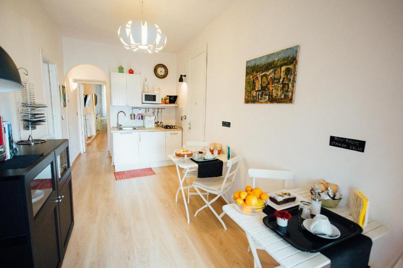 The property is located very close to city center. Had a good patisserie close by with amazing products. Parking also could easily find around the location, depending on the hours, usually in the evening less options but still achievable. We could use the fridge to store our own products. The place was clean and nice, air conditioning which was essential in the hot summer days.