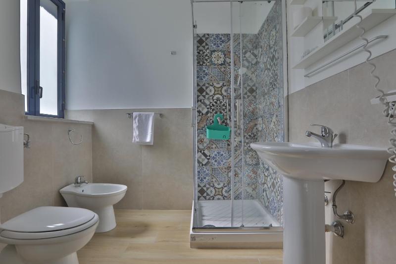Offering free toiletries, this triple room includes a private bathroom with a shower, a bidet and a hairdryer. the air-conditioned triple room offers a flat-screen tv, a seating area, a wardrobe, a tiled floor as well as an inner courtyard view.