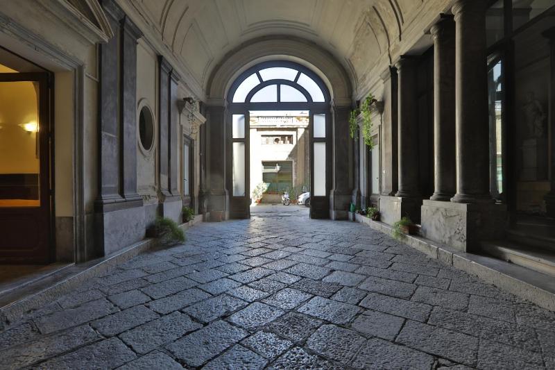 It is close to the lively Maqueda street. If they are not in the premises they can open the door by remote control. All renovated and modern. Just on top of a Gamer shop. You can have breakfast or your own food, in the kitchen, where you have a microwave, a coffee machine, cups and bowls, a fridge and a sink.