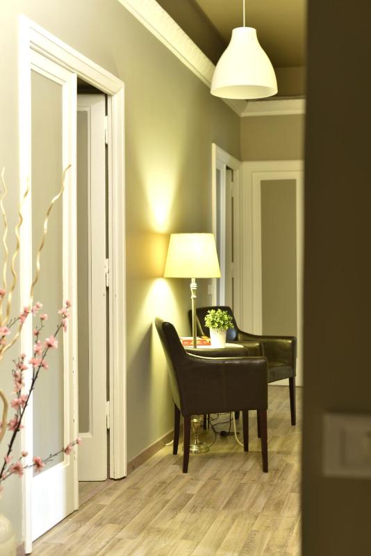The apartment is situated in a pleasant residential neighborhood, conveniently located within walking distance of Metro Line A and the train station that connects to the airport. This prime location offers ease of travel for both local commutes and long-distance journeys. Additionally, a 24-hour mini market nearby ensures that essential items are always within reach.