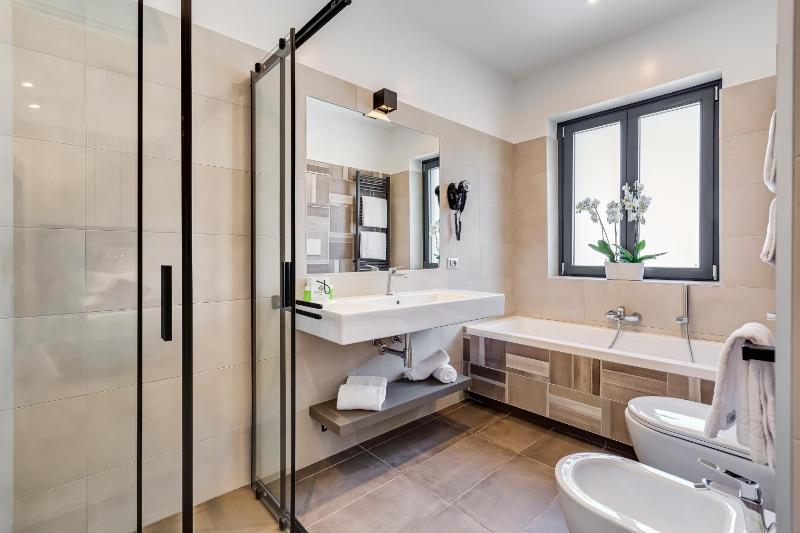 Included breakfast was varied and tasty. Our 3 night stay was in unit 24 a separate part of the hotel. Very nicely decorated. Bed was a queen-size. Bathroom with wide sink, large modern shower. Quite due to all the shrubs & trees and the layout. Hotel offers a morning shuttle service on demand to the train station. Great to get to old Rome. To get back you may either take the train then taxi to hotel or taxi from town to hotel.