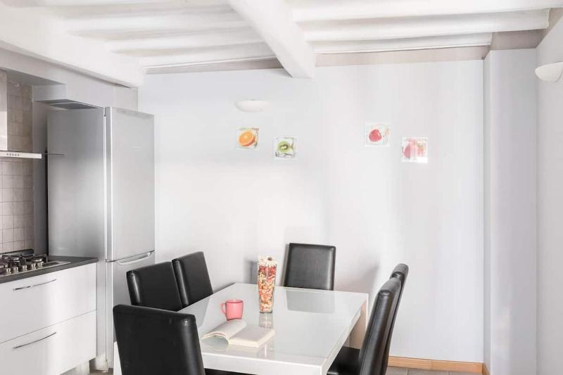 The location was excellent, very close to Piazza di Spagna and the Corso, lots of bars, restaurants and shops including a mini market nearby. Very secure and on the third floor, there is a lift, albeit very small. Three double bedrooms and one decent sized single room, perfect for our needs. Well appointed kitchen including a washing machine, two bathrooms, one with bath and hand held shower and one with a shower cubicle and no bath.