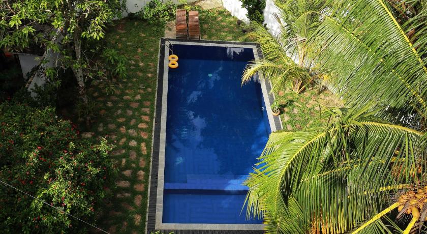 the location has a very nice pool with a shallow area where our daughter (1.5 years) could play. You can walk to the beach and restaurants are within walking distance. Ahangama is 1.5 kilometers away. With the tuktuk maximum 5 minutes. Room also nice and spacious and not much trouble from the very busy road.