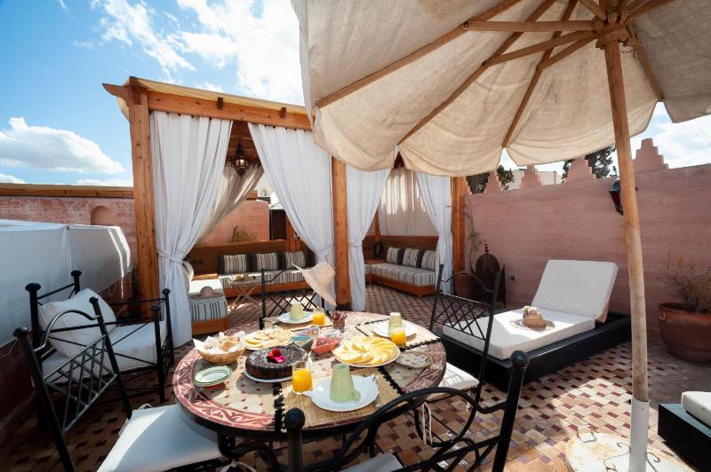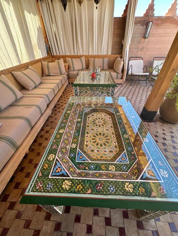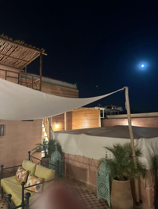 Convenient location within easy walking distance to Jamal El Fna square and the main sightseeing places in the medina. The property is tastefully done with clean rooms and a beautiful central courtyard which is also artistically decorated with everyday objects giving it a homely feel. The rooftop terrace is also splendidly done with sofas and lounge chairs for relaxing; the highest perch affords a magnificent view of the snow capped High Atlas on clear days. The best part is the extremely helpful and welcoming staff especially the charming and enthusiastic Wahib who greeted us at the parking, helped us with our bags and also used his contacts to help us buy some home made cookies saving us the bother of finding our way through the confusing medina lanes.