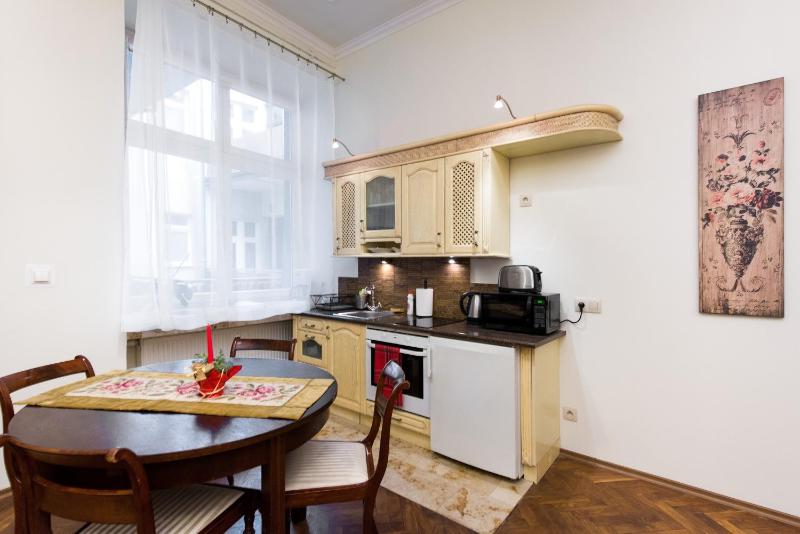 Excellent apartment in a great position in the old town. The breakfast was lovely and good value. The host was very helpful even letting us keep our bags in another apartment until later in the day. The bathroom and bedrooms were quite large and impressive. I Highly recommend this apartment.