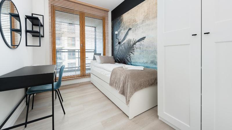 The apartment is located in a very nice, brand-new community. Despite being close to the train station, the neighborhood is very quiet. The apartment is also located very close to the Old Town Kraków, with everything conveniently nearby. The apartment itself is spacious, very clean, and features modern furniture and great design, making our stay very pleasant.