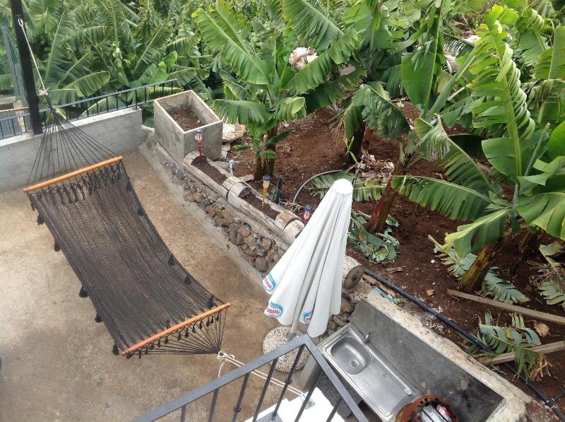 Close to the city (with the car), quiet, nice views - ocean, among the bananas, all equipment provided, extra fresh bananas on the table