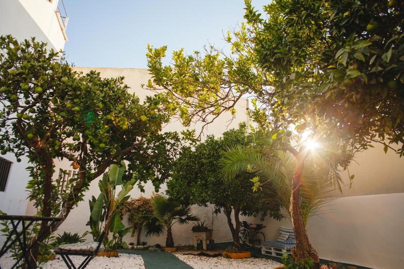 Lovely garden full of orange trees. Friendly staff, and adequate kitchen for cooking, if required. Very central, near marina, and easy walks Ng distance to bus and train stations