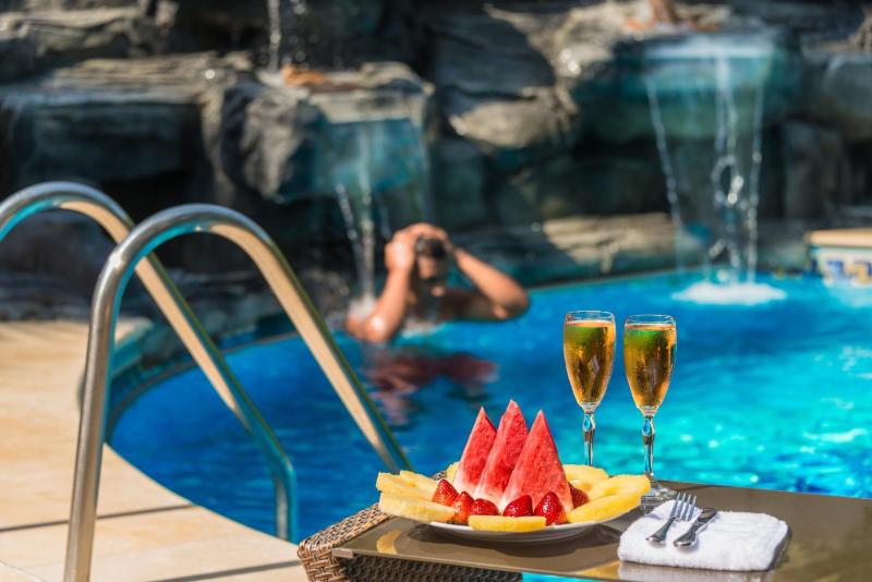 Room lights are not comfortable (dark). There is no view in the room. Swimming Pool has no filter to clean it and it is cold for kids as there is no water warmer.