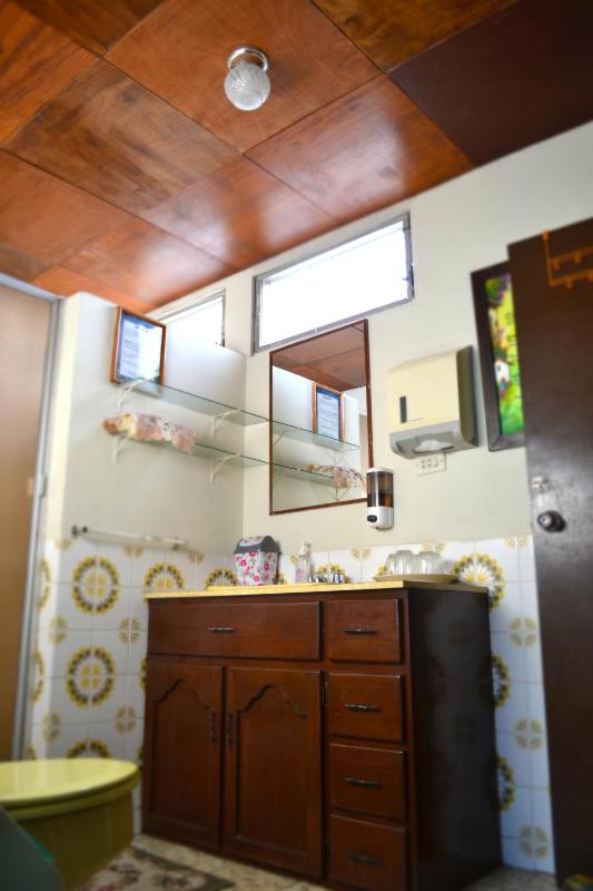 a mix between a homestay and a hotel, in a nice part of town. Really great hosts who were patient with my limited Spanish. I bought some pupusas and they stored them in the freezer so I could take them home the next day.... I had arranged for an airport dropoff with them for ~6AM and slept in. They woke me up in time to get ready and catch my taxi - They also gave me a free pupusa for breakfast. cute lobby and common area and rooms were comfortable with just the fan. the room and facilities were very clean. I would stay here again!