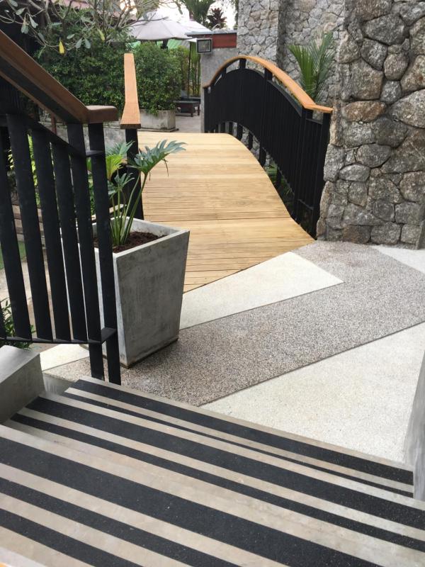 The accommodation is perfect for a young couple or a friend group. So close to town but also in a quiet neighbourhood so perfect when you want to party and visit markets in the evening but also enjoy some quiet time by the pool. Very nicely designed and the outdoor area is comfy and gives tropical jungle vibes. The pool area is a bit smaller than expected but nevertheless it was more than enough for us! We travelled in may-june so that was the low season and i think at some point we were the only guests in the hotel, so that could have been the reason we had plenty of privacy and room outside and enough sunbeds. So keep that in mind when you travel high season-if you plan on staying by the pool the whole day it might get tight. The previous comments mentioned that the hotel was located on the hill- yes, it could be hard to reach for older people but we never had any problems, youll be sweaty either way thanks to Thai humidity. Taxis never had any problem taking us up and we rented bike most of the time and it was very convenient. You can rent the bike on the property with reasonable price.