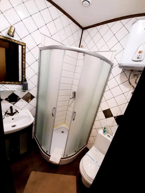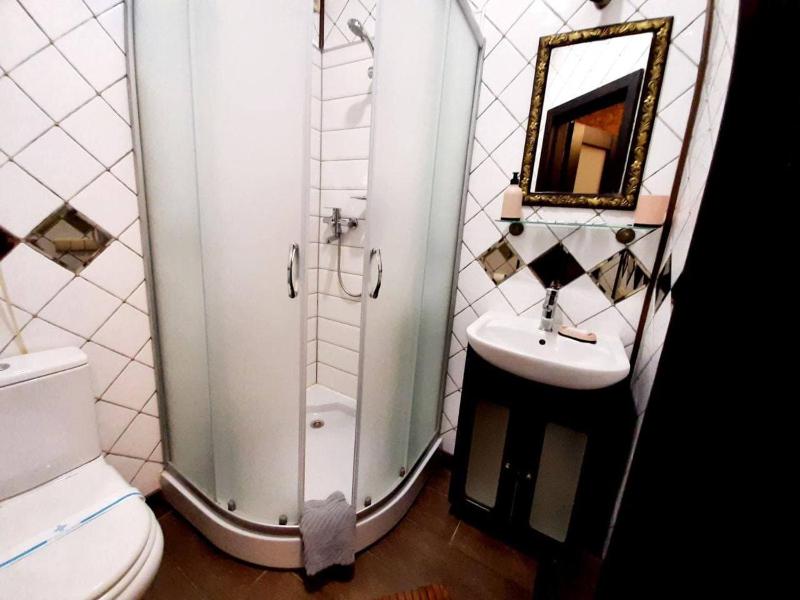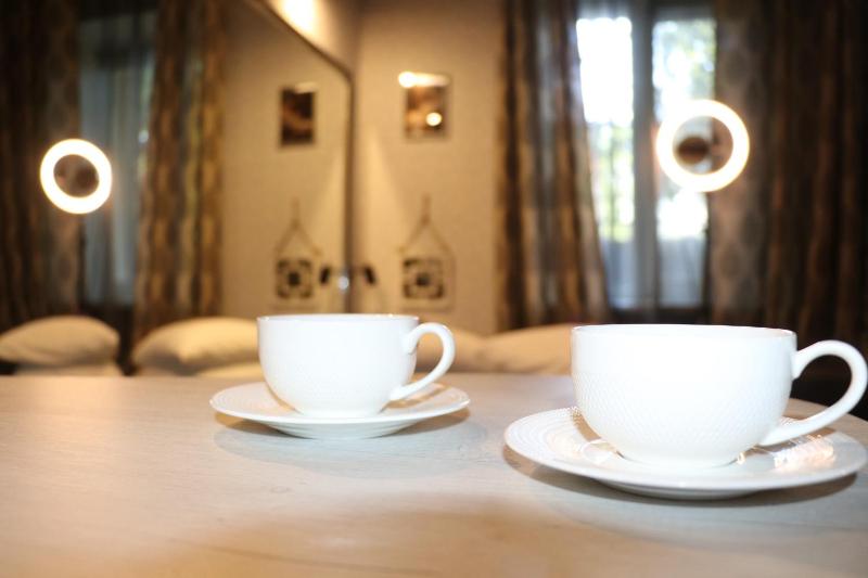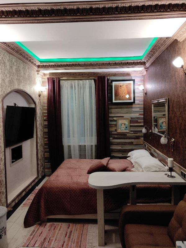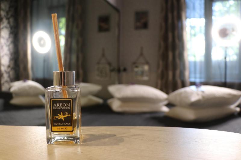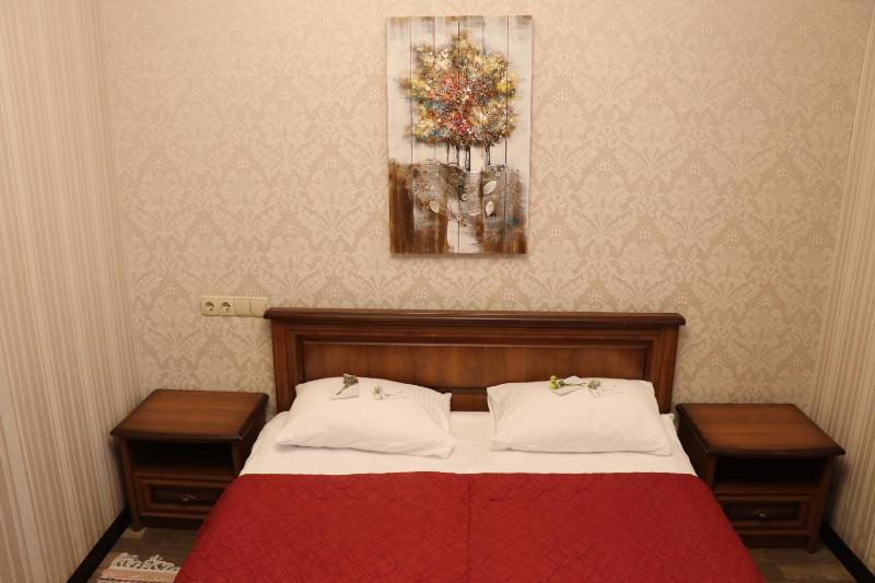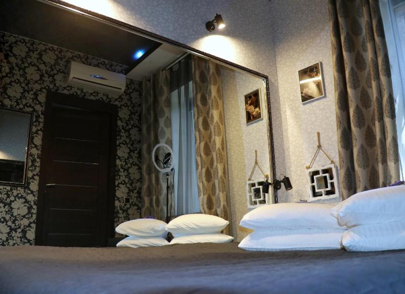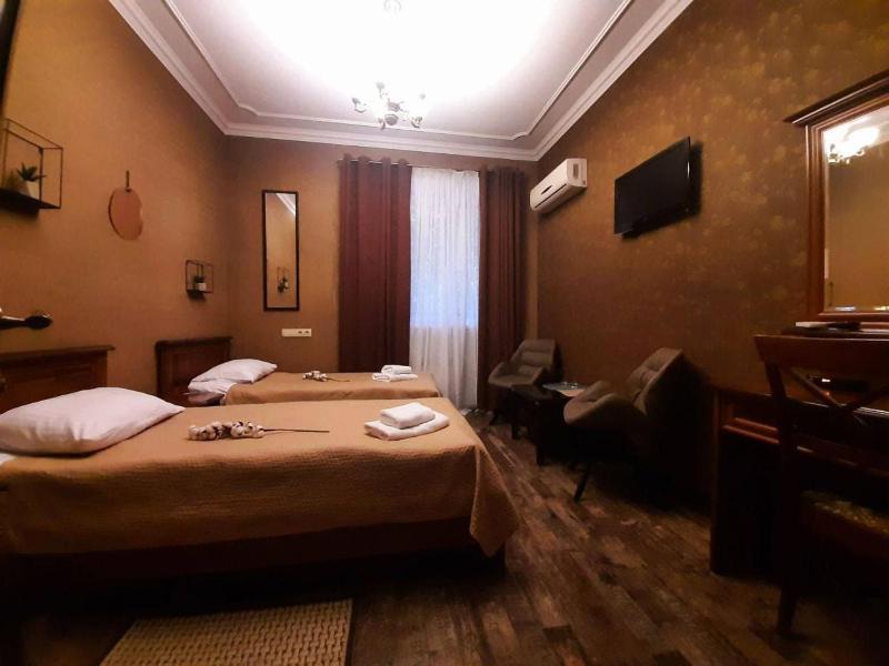 This is a small family-run hotel, and the family running it lives there themselves during the war. The hotel is located on the ground floor, partly below the street level. That makes it safer during missile attacks.