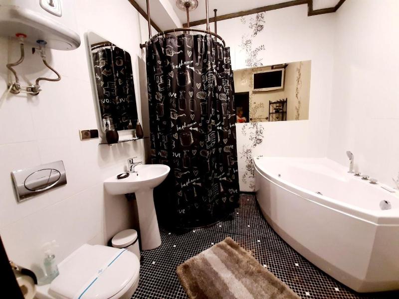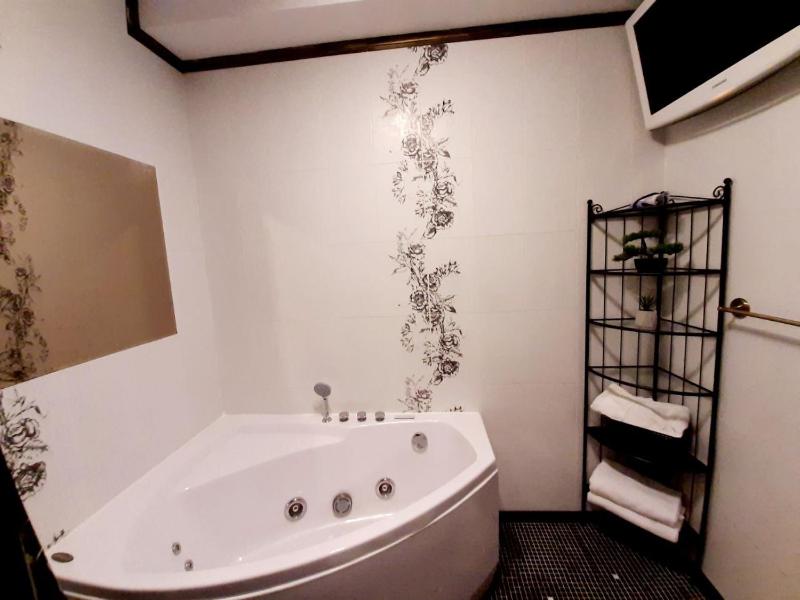 in addition to the standard amenities, the bathroom comes equipped with a spa bath.