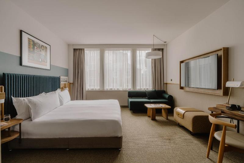 Fantastic location, literally just outside St Paul’s Cathedral. Very chic hotel with mod-con amenities like Nespresso machines, tvs you can cast to from your own devices, a super coffee/matcha bar in the lobby with baked goods from Bread Ahead in Borough Market. No traditional ‘breakfast’ space offered. The lobby opens into the Cote brasserie next door which provides an array of French-style bistro dishes. Very clean, modern and quiet. The tube is c.5-7 minutes walk away.