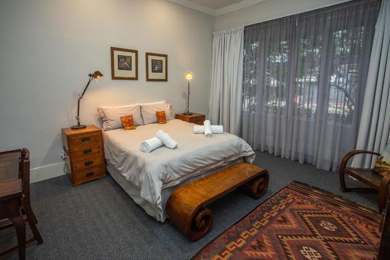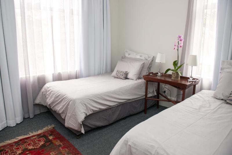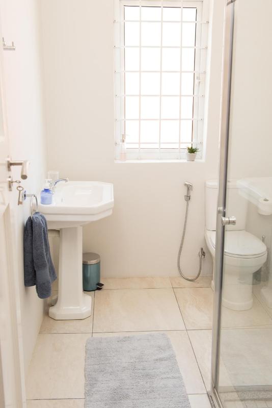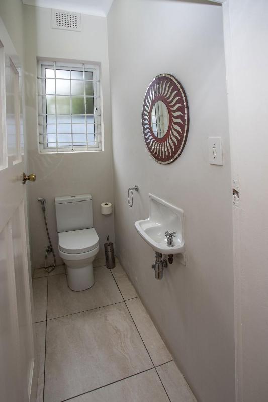The single toilet door did not lock, or rather the locking mechanism did work, but the door frame allowed the locked door to slide open. This needs attention. Also, in the bedroom with two single beds, the chain for the ceiling fan is not reachable, even when standing on a chair (not safe to reach the chain that way). In humid Durban climate a working ceiling fan is a minimum requirement.